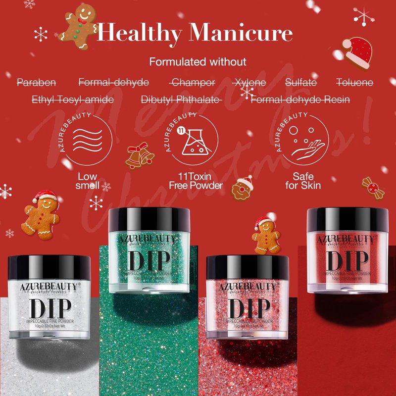 - 【Ideal Gifts & Trusted Brands】 AZUREBEAUTY Christmas dip nail powder kit with more advanced and simple colors is an ideal gift for your sister, mom, and friends. # Note: According to different skin symptoms, it should be tested before use to check if there is any reaction.#