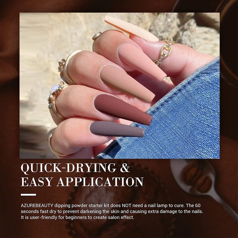 - 【Long Lasting & Superior Quality 】:AZUREBEAUTY dip powder nail kit is long-lasting and anti-chipping, anti-peel off. The color is full and natural-looking, light, and has an impeccable shine finish. It can keep the nail art gorgeous and shiny for more than about 21 days with proper application