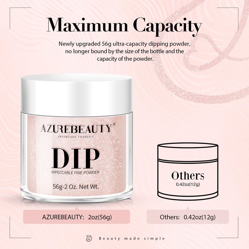 - ★ULTRA-CAPACITY: Compared with other 1 oz or 0.43 oz small capacities, AZUREBEAUTY dip powder capacity is 2 oz, which is more durable. The newly introduced extra-large capacity dipping powder is very suitable for families or nail salons.