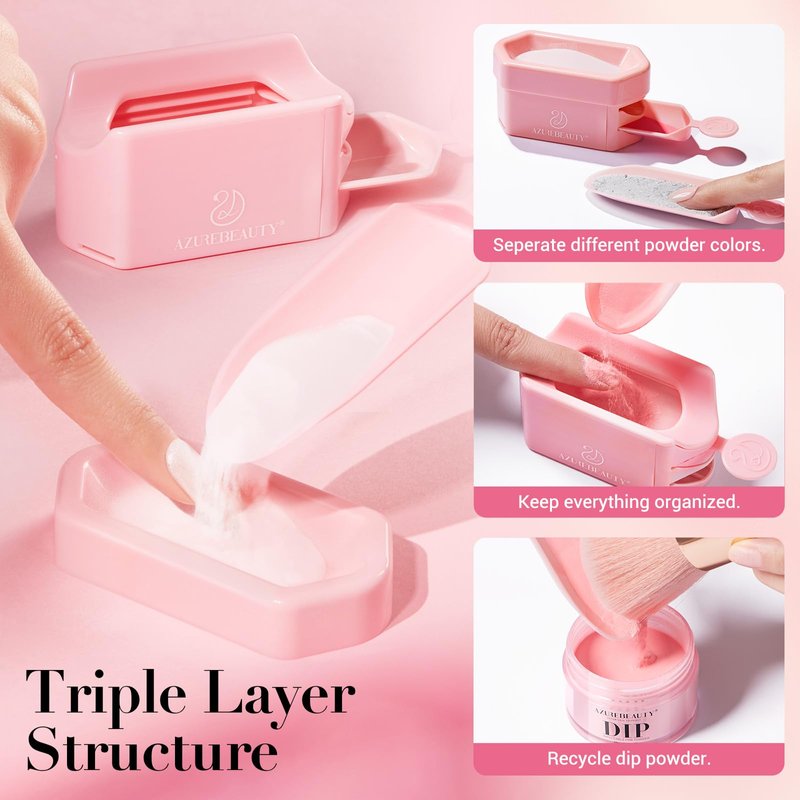 - Easy to Use: The nail dip powder tray is designed with triple layers of detachable to meet your needs for different nail art. Recycling trays can be separated to dip powder of various colors, and can also recycle excess powder, don't worry about reducing waste. Moreover, AZUREBEAUTY nail powder recycling trays are designed with a small opening at the bottom of the side to effortlessly recover any spilled powder without having to worry about difficult cleaning