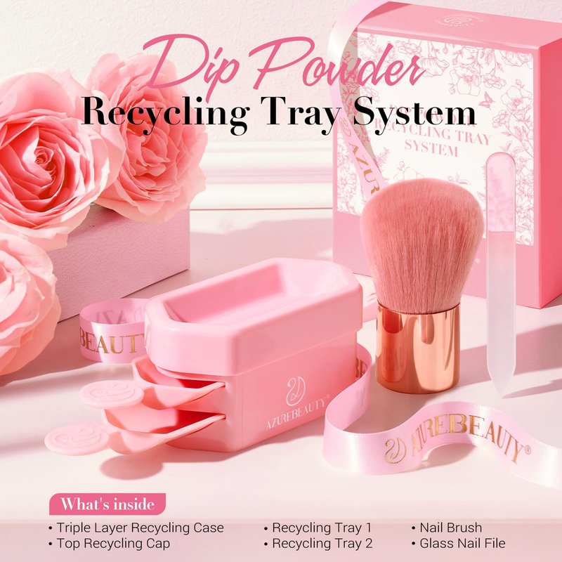 - Manicure Essential Tool: AZUREBEAUTY dip powder recycling container contains a triple layer recycling case, nail brush, and glass nail file; Made of ABS material, non-toxic and more durable and safe