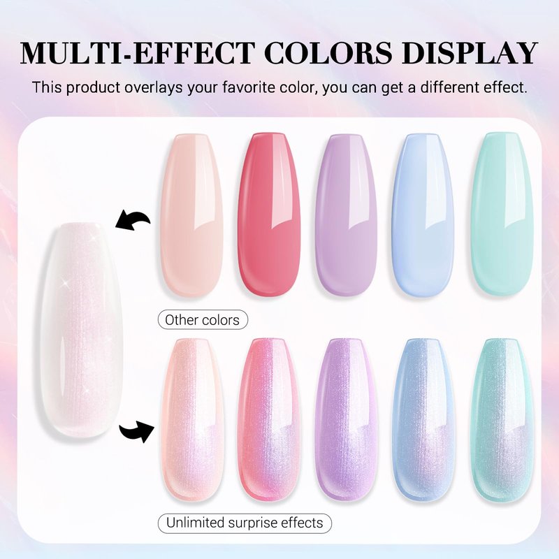 - 💅【Multiple effects】Clear glitter pearl white as a versatile color,you can overlay any color you like.For example, the first layer is painted with a basic pink,and then it will turn into a shimmering pink after superimposing glitter white,showing the effect of a new color.If you need a shiny milky white,you can color it by superimposing.This neutral nail polish color can have different effects when superimposing different colors.Switch your style anywhere