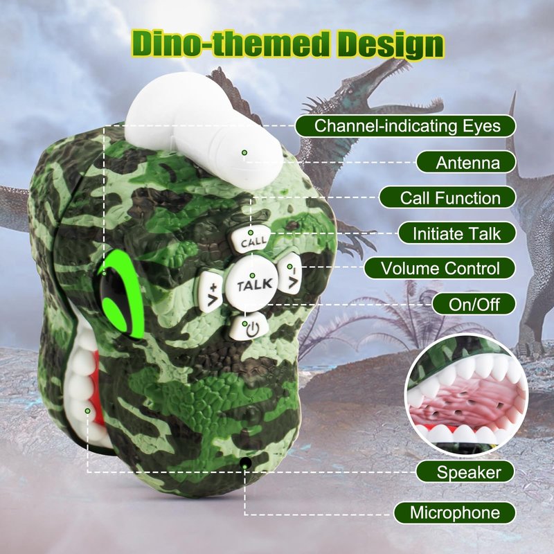 - Clear and Smooth Communication: This kids' walkie talkies toys offer crystal-clear sound quality and adjustable volume, ensuring seamless conversations during playtime, adventures, camping, hiking, and indoor fun. The dinosaur-themed walkie talkie makes a fantastic gift choice for all kinds of exciting activities