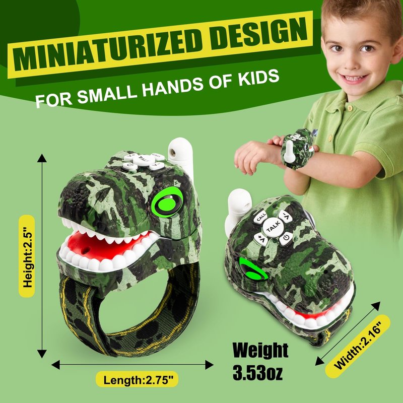 - Adjustable Dino Footprint Wristband: Our kids' walkie talkies feature easy-to-use buttons, perfect for children aged 3 and up. The adjustable wristband, adorned with cool dinosaur footprint patterns, ensures a comfortable and secure fit, allowing kids to enjoy hands-free communication during their adventurous games.