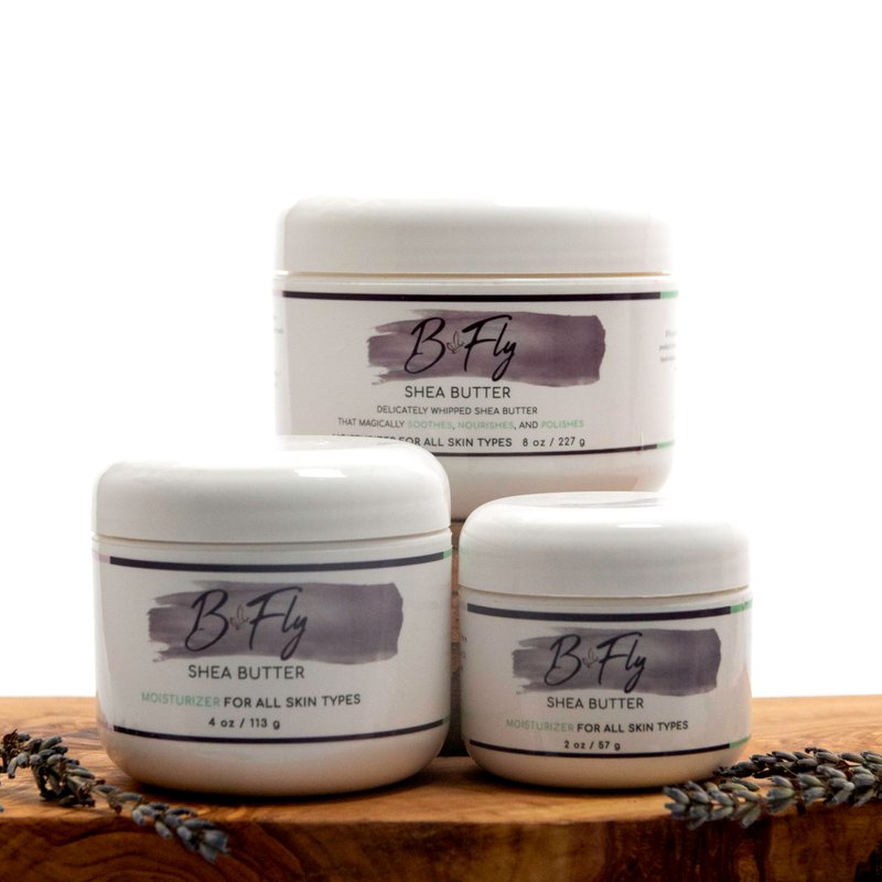 Experience the luxurious benefits of B Fly Shea Butter, crafted with organic ingredients ethically sourced from Ghana. This rich, nourishing body butter deeply moisturizes, reduces inflammation, and enhances collagen production, leaving your skin with a radiant, healthy glow. Infused with a blend of natural oils and pure shea butter, it intensely hydrates without leaving any greasy residue. A little of this rich cream goes a long way, effectively sealing in moisture to keep skin soft and smooth. The calming lavender scent soothes the senses while softening and restoring your skin. Perfect for daily use after a bath or on dry patches, this versatile moisturizer revitalizes and replenishes, delivering long-lasting hydration.