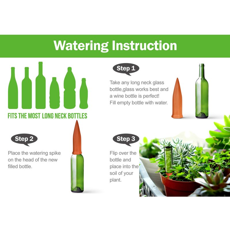 - [EASY TO USE] Just recycle any long neck bottles, such as wine bottle, glass beer bottle, soft drink bottle etc., not need any more fittings required. Place this device into soil then stick with bottle full of water, that's all.