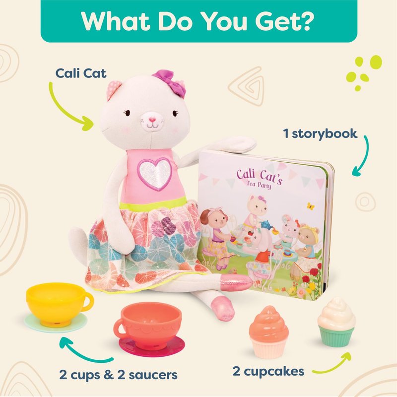 B. toys- Tippy Toes- Cali Cat- Plush Cat Playset- Pretend Play – Tea Party Set – Plush Cat Doll – Board Book – Cups & Play Food – 2 Years +