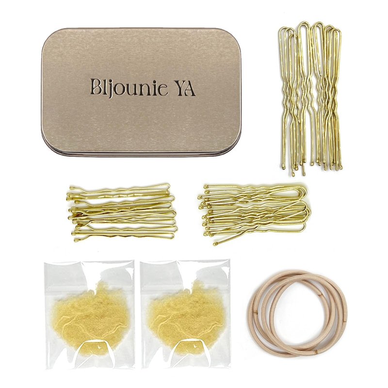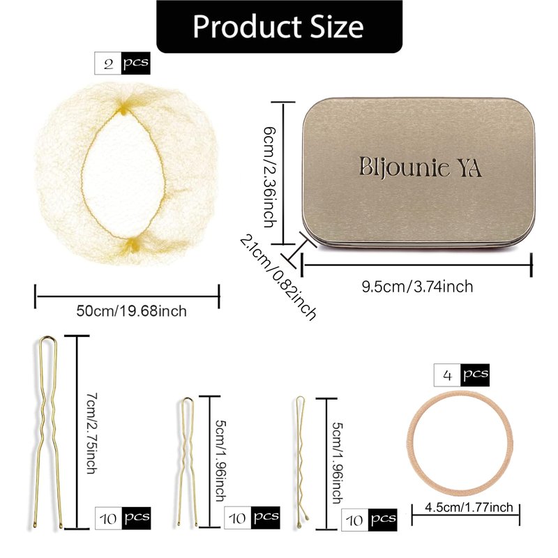 B1jounie YA Hair Accessory Set - Includes 20 U-shaped Pins, 10 Bobby Pins, 2 Invisible Hair Nets, 4 Hair Elastic Bands for Ballet Bun, Yoga, Working - Blonde