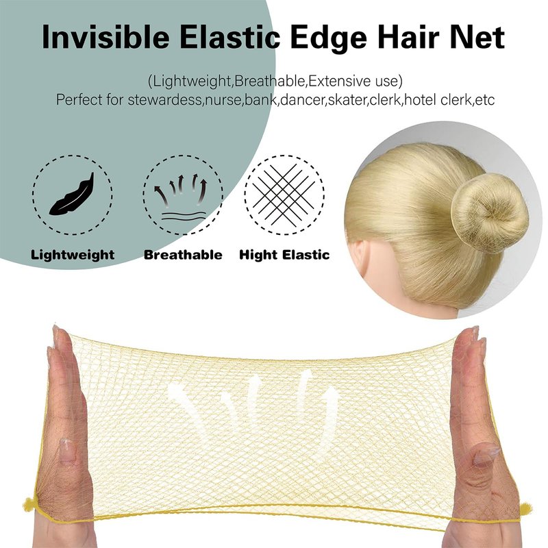Hair Nets and Bobby Pins Hair Net: Quality hair nets: nylon elastic lace with hand-tying, light weight, strong, durable; Great for stewardess, nurse, bank clerk, hotel clerk, dancers or skaters and so on, which make their hair will stay put while performing Invisible Hairnets:Small mesh holes and elastic edges, keep your hair stays in place securely while working, soft and comfortable to wear all day long, black color works well with most hair colors, make your hair bun looks neat and natural. U-shaped Pins Quality Material: Our U shaped hair pins made of durable metal, reusable, comfortable to wear, not easy to break, and not easy to be out of shaped due to bent Safe Design: These hair bun pins possess small ball ends and a protective coating on the surface,which prevent from scratching the scalp when applying; Its wavy U shape makes it hold your hair firmly, Waved pins are easy to shape your hair and can be used for many hair styles, like up-dos, buns, etc. Wide Applications: These Hair pins for bun are good assistant for your make up and easy to DIY your own hairstyle. Suitable for making various hairstyle, create professional looking evening styles or casual day looks.