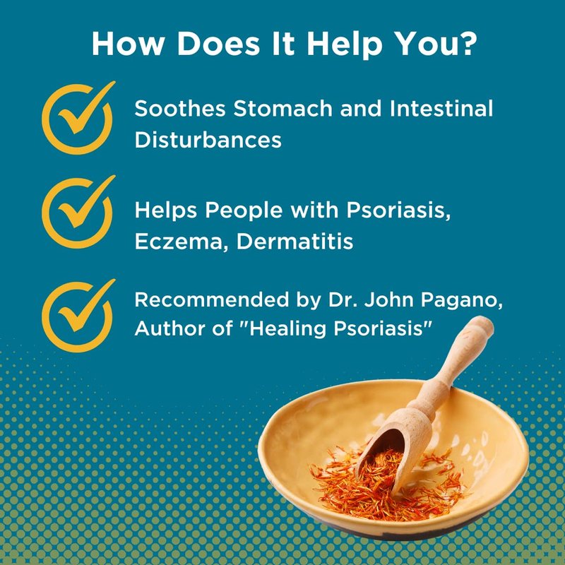 - AMERICAN SAFFRON - Made from whole flower stamens of Carthamus tinctorius, this American Saffron is recommended by Dr. John Pagano, author of "Healing Psoriasis."