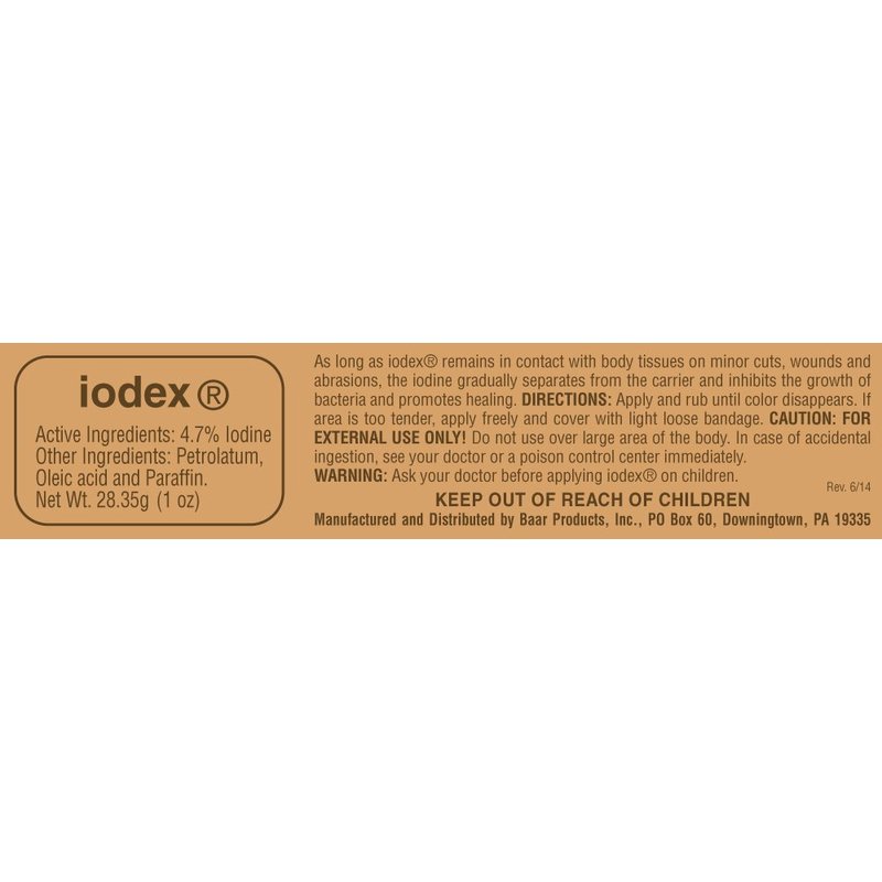 Baar Products - Iodex Antiseptic Ointment - 4.7% Iodine - Prevents Infections, Promotes Healing, Inhibits Bacteria Growth - for Minor Cuts and Wounds - 1 oz