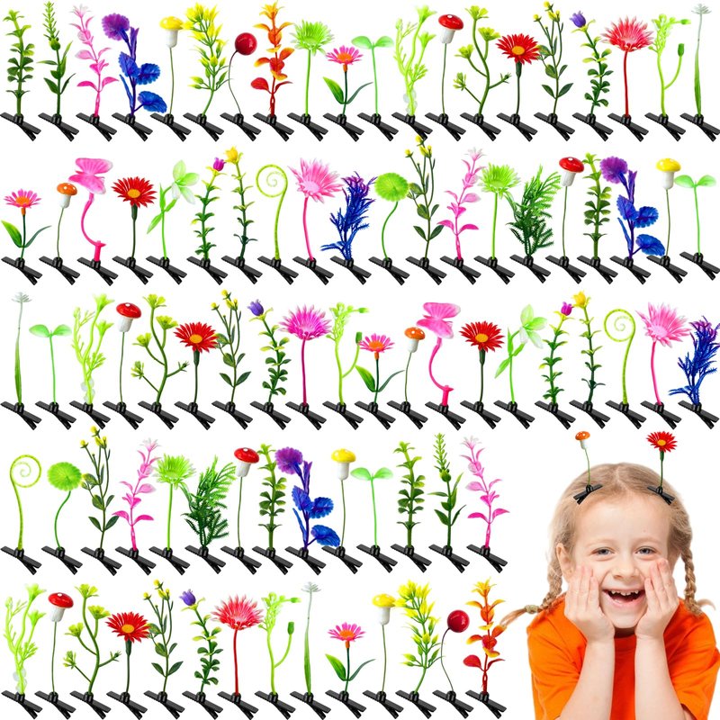 Baaxxango 120 Pieces Bean Sprout Hair Clips,Funny Plant Hairpins,Mixed Style Flower Butterfly Mushroom Little Grass Barrette Hair Accessories for Women,Girls,Kids,Party
