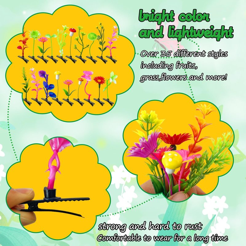 - Large quantity and style:The package comes with 120 random style plant hairpins,including grass,fruit,butterflies,flowers,mushrooms,etc.,random style, enough to meet your different decorative needs