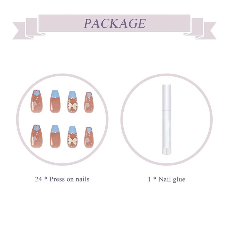 Package Content: 24pcs glossy press on nails, 1 nail glue