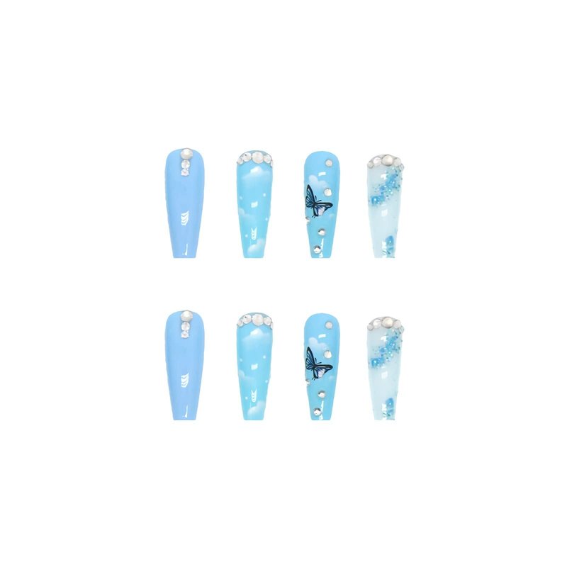 - 【Unique Design】Blue Butterfly design, Long coffin shape press on nails, combine trendy elements with classic color and shape, looks charming and special