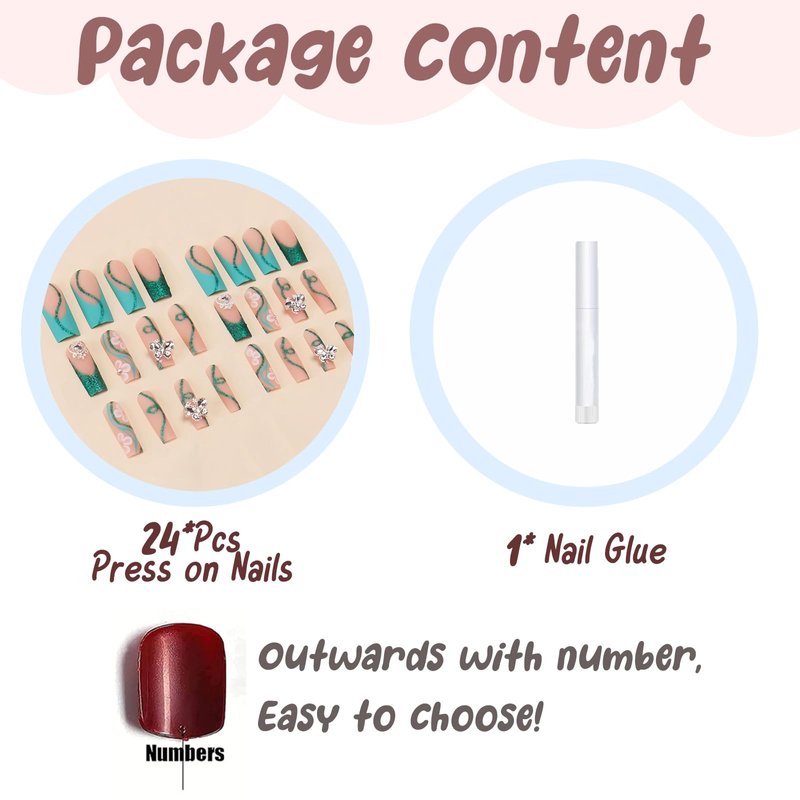 - 【Health and Durable】Our green press on nails are made of healthy ABS material, no irritating smell, higher gloss, not easy to break, and will not harm the human body or nails, and can be used with confidence