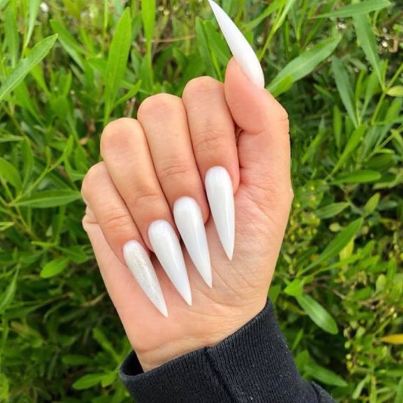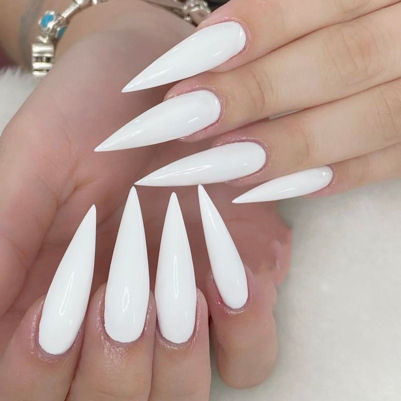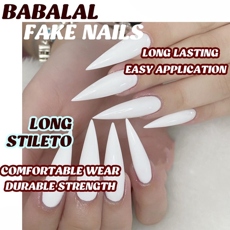 BABALAL Long Stiletto Press on Nails White Fake Nails Glossy Glue on Nails 24Pcs False Nails Almond Manicure Acrylic Nails for Women and Girls