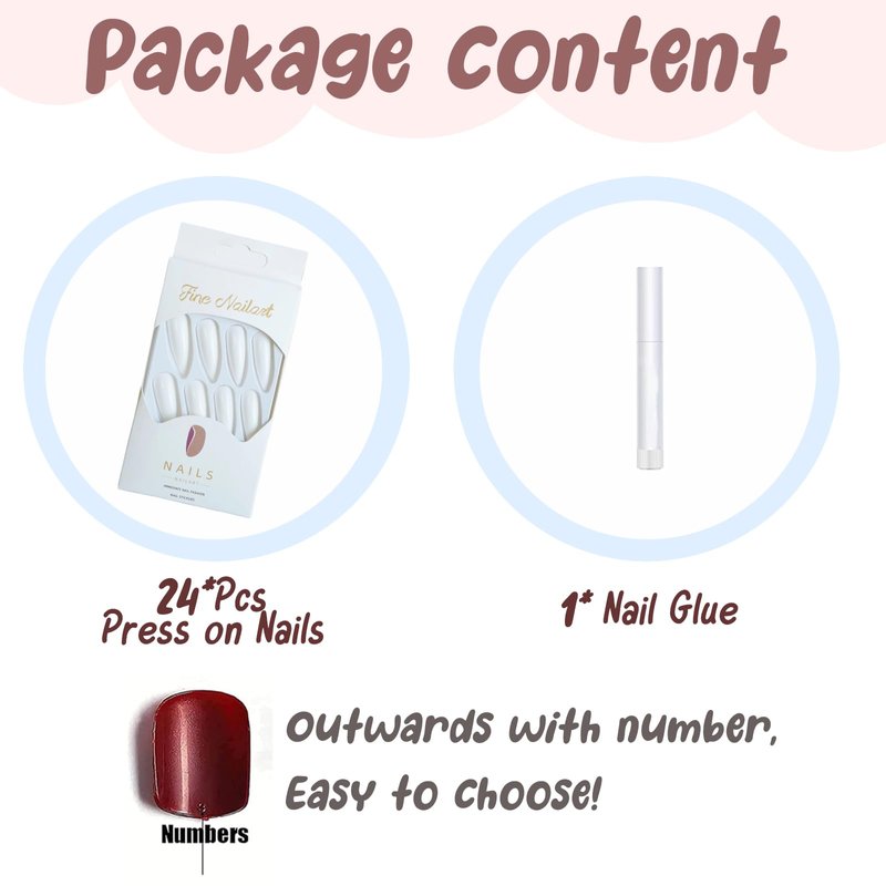- 【Comfortable to Use】The press on nails long are designed according to the curvature of female nails, with moderate thickness, natural fit, more natural effect, and comfortable to use