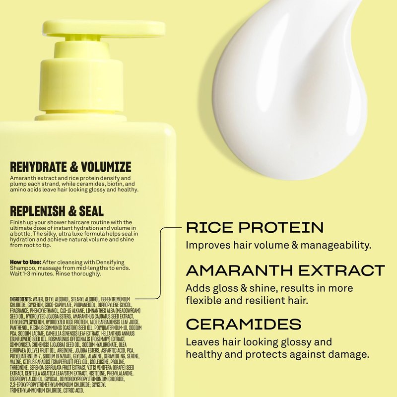 Treat hair to a dose of ultra-hydration and instant volume. Amaranth extract and rice protein densify and plump each strand, while ceramides, panthenol, and amino acids leave hair looking glossy and healthy. This nourishing formula creates extra body and visibly thicker-looking locks over time.