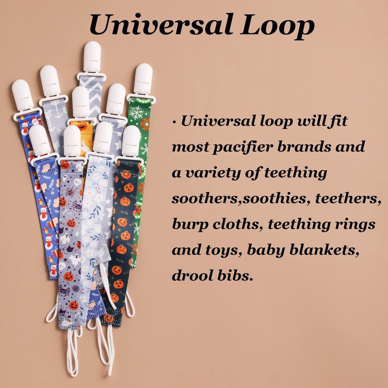 - Multi-Use: These pacifier leashes are usually used for soothies, burp cloths, teething rings and toys, baby blankets, drool bibs. They are universal binky clips and fit to your favorite brands of pacifiers and soothers.