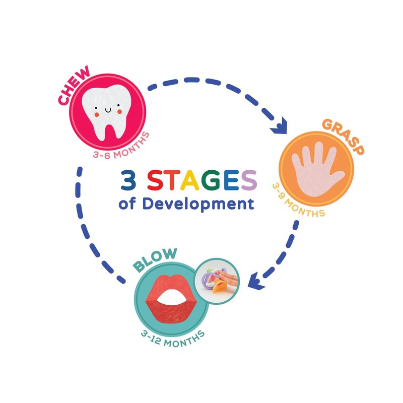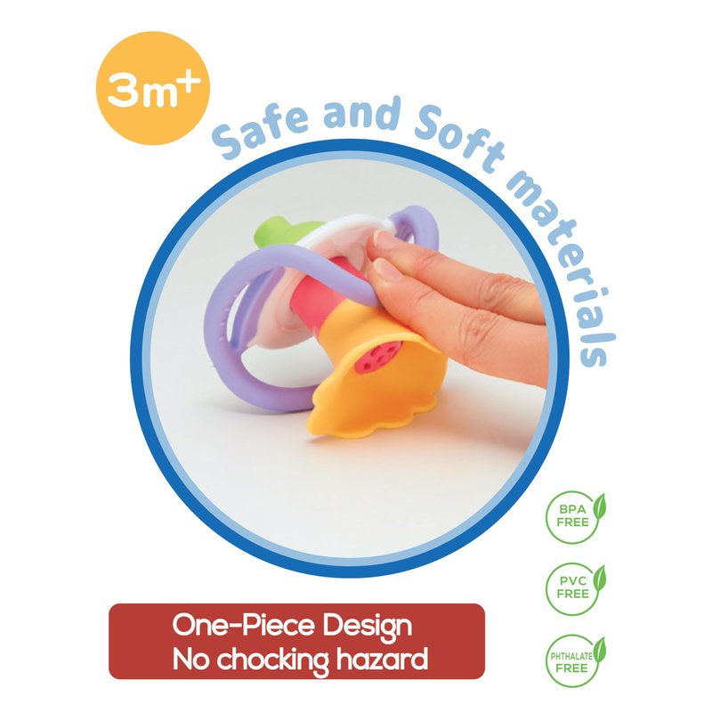 - šINFANT DEVELOPMENT: The cheerful colors encourage tactile exploration, helping babies to develop their sense of touch and feel. The blowing and sucking action of the Flower Whistle works to encourage the use of oral muscles that are critical for language development!