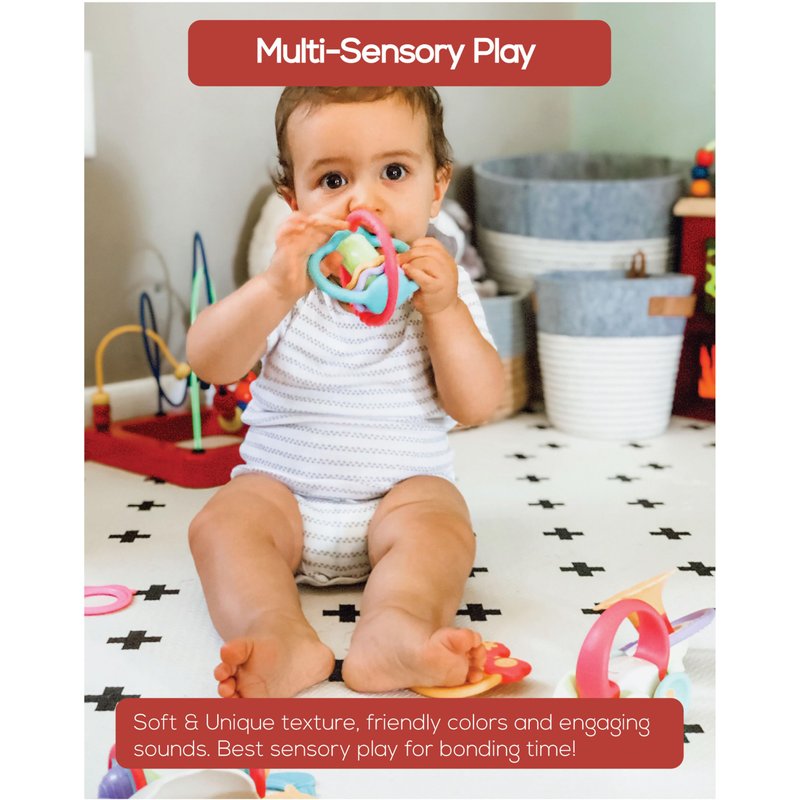 - š INFANT DEVELOPMENT: The cheerful colors and gentle rattle encourage tactile exploration, helping babies to develop their sense of touch and feel. The soft material works to encourage the use of oral muscles that are critical for language development!