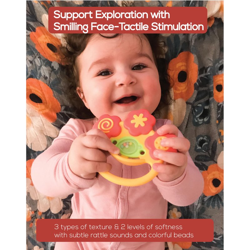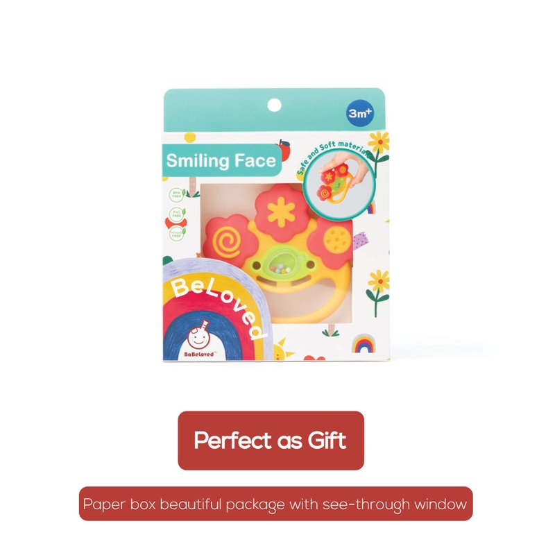 BaBeloved Smiling Face Baby Teething Toys Multiple Texture Sensory Montessori Baby Teether Toys Soft Food-Grade Teethers for Babies Rattling Teething Relief, Chew Toy for Babies 0-12 Months, BPA Free