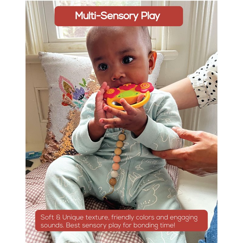 - š INFANT DEVELOPMENT: The cheerful colors and gentle rattle encourage tactile exploration, helping babies to develop their sense of touch and feel. The soft material works to encourage the use of oral muscles that are critical for language development!