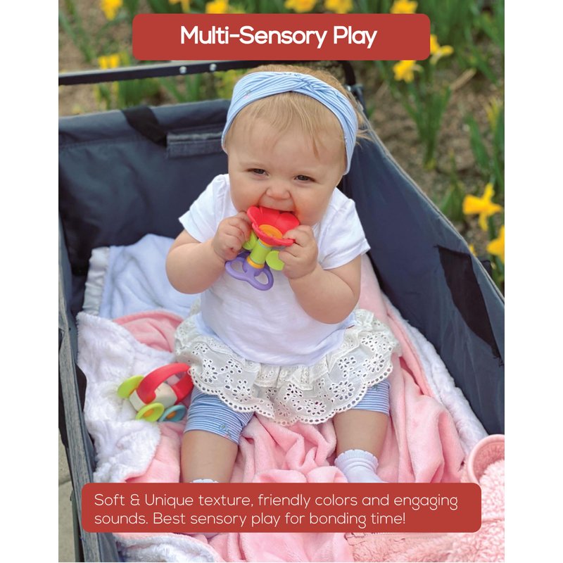 - š INFANT DEVELOPMENT: The cheerful colors and gentle rattle encourage tactile exploration, helping babies to develop their sense of touch and feel. The soft material works to encourage the use of oral muscles that are critical for language development!