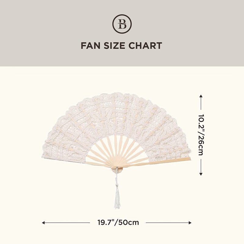 BABEYOND Bridal Folding Handheld Fan Embroidered Cotton Lace Hand Fan with Bamboo Frame for Wedding Decoration Dancing Party