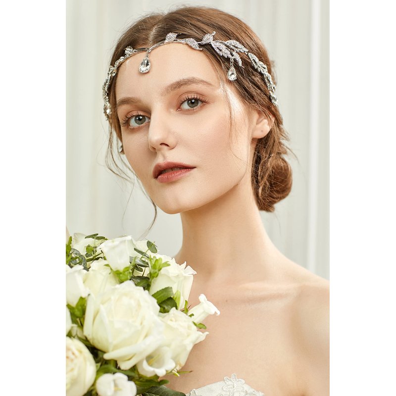 - Design: This bridal forehead diadem features floral and leafy design, bedazzled with sparkling pendent crystals that bursts with a royal sensation. It is graceful and classic, which will be the perfect accessory for any elegant looks.