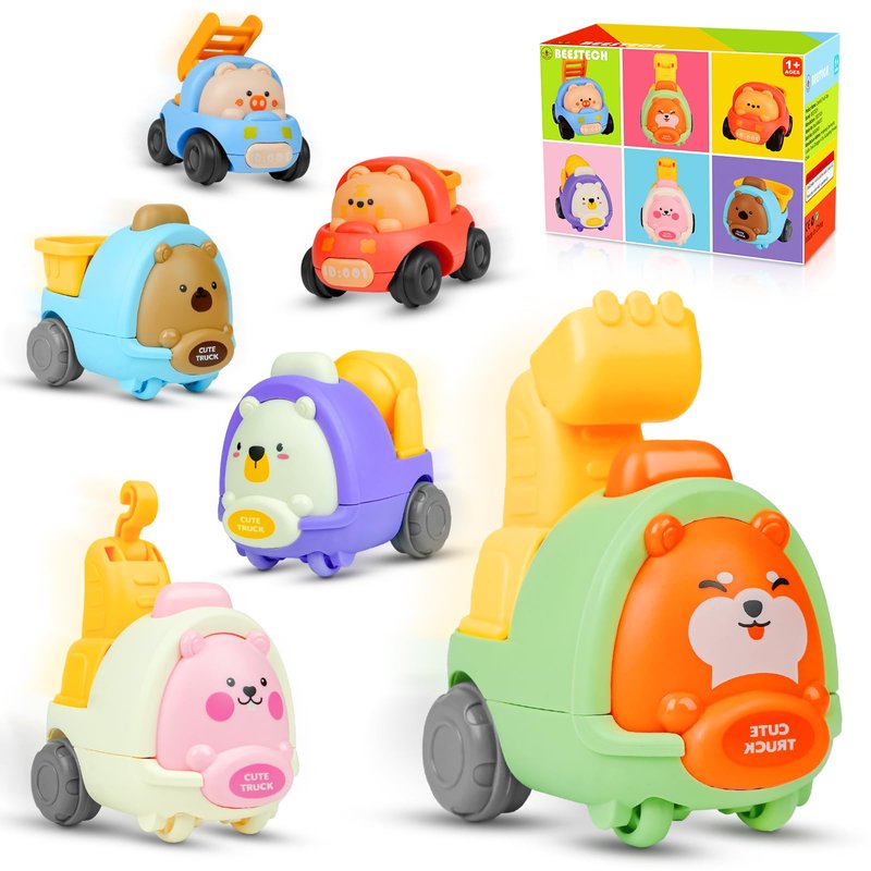 Baby Animal Pull Back and Go Truck Toys, Cars Toys for 1, 2, 3 Year Old Boys, Girls, Birthday Gifts for Toddlers, Preschools, Kids, Colorful 6 Pack