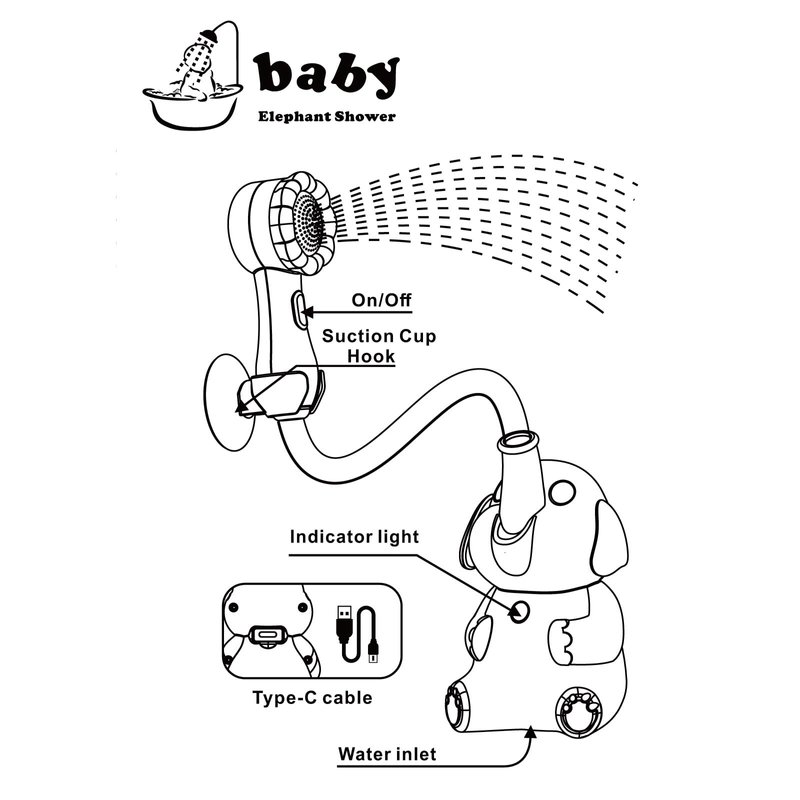 - Notice : The water inlet at the bottom of an elephant's body may sometimes form a film of water, which can affect its functionality. Just shake it and clear the water film, and the elephant showerhead will work as usual.