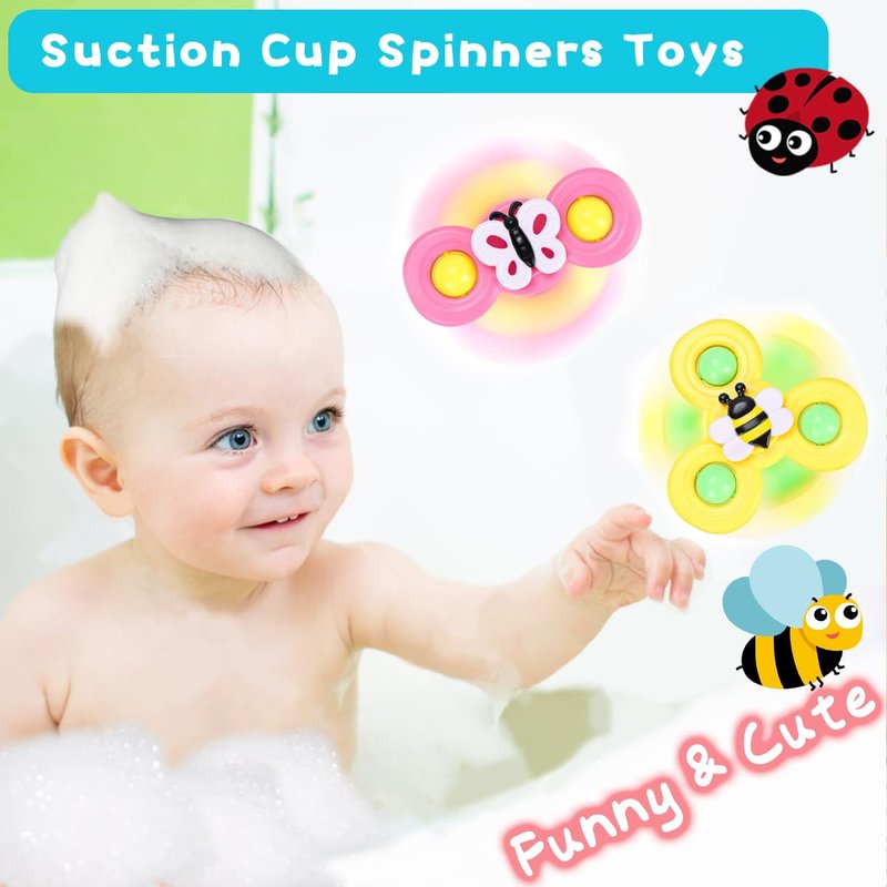 Baby Bath Toys for Kids 1-3 Toddler Suction Cup Spinning Bath tub Toys Sensory Toys for 1 2 3 4 Year Old Girls Boys Gifts Ideal with Color Box