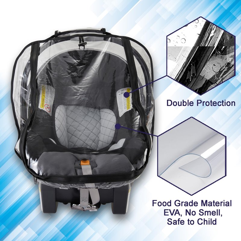 - Baby & Beyond's Custom designed rain cover and weather protector fits most universal car seats