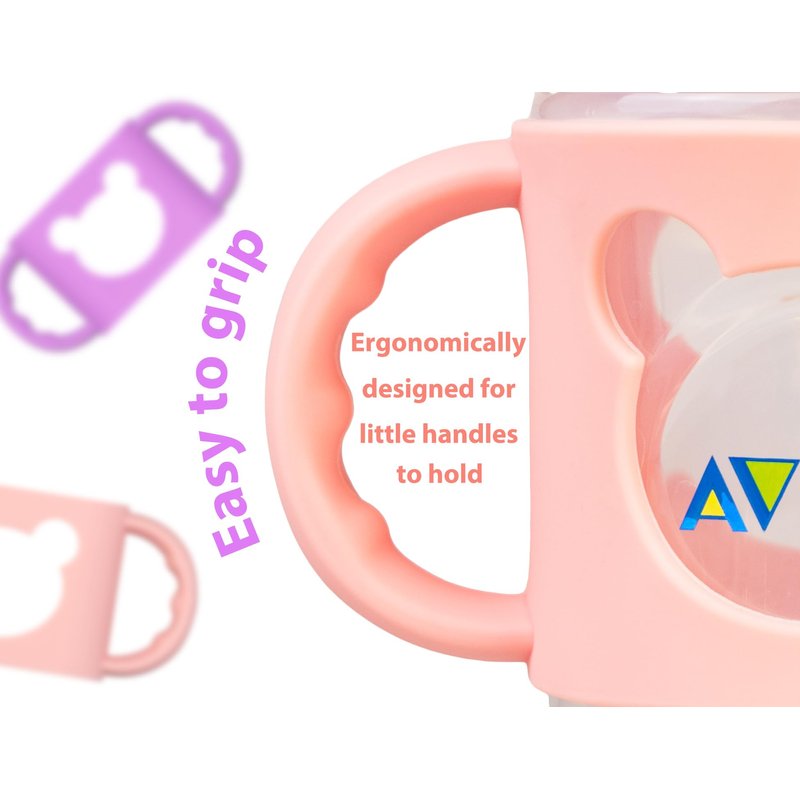 Introducing our adorable Baby Bottle Handles, designed to make transitioning from bottles to sippy cups a breeze! Crafted from durable food-grade silicone, these handles offer a secure grip for your little one's tiny hands. With their cute bear design and vibrant pink & purple colors, these handles add a fun touch to your baby's feeding essentials. Each pack includes 2 handles, perfectly sized to fit wide-neck baby bottles. Made from premium quality silicone, these handles are gentle on your baby's delicate skin and are free from harmful chemicals, ensuring safe and worry-free use. Whether your little one is learning to hold their own bottle or transitioning to a sippy cup, these handles provide the support they need for independent feeding. The ergonomic design promotes proper hand positioning, helping your baby develop essential motor skills. Make feeding time fun and hassle-free with our Baby Bottle Handles. They're not only practical but also stylish, making them a must-have addition to your baby's feeding accessories. Upgrade your baby's bottles with these adorable and functional handles today!