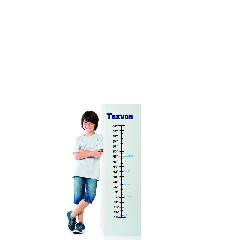 Baby Boy Blue Personalized Custom Name Vinyl Growth Chart Decal Hanging Height Ruler Sticker for Children, Kids Room Wall Children’s Nursery Décor 8 Inches X 40 Inches