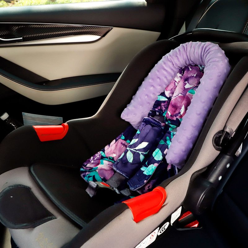 Baby Car Seat Head Support for Girls, Infant Carseat Insert Super Soft Minky Newborn Headrest Seatbelt Covers for Car Seat, Stroller, Bouncer, Purple Flower