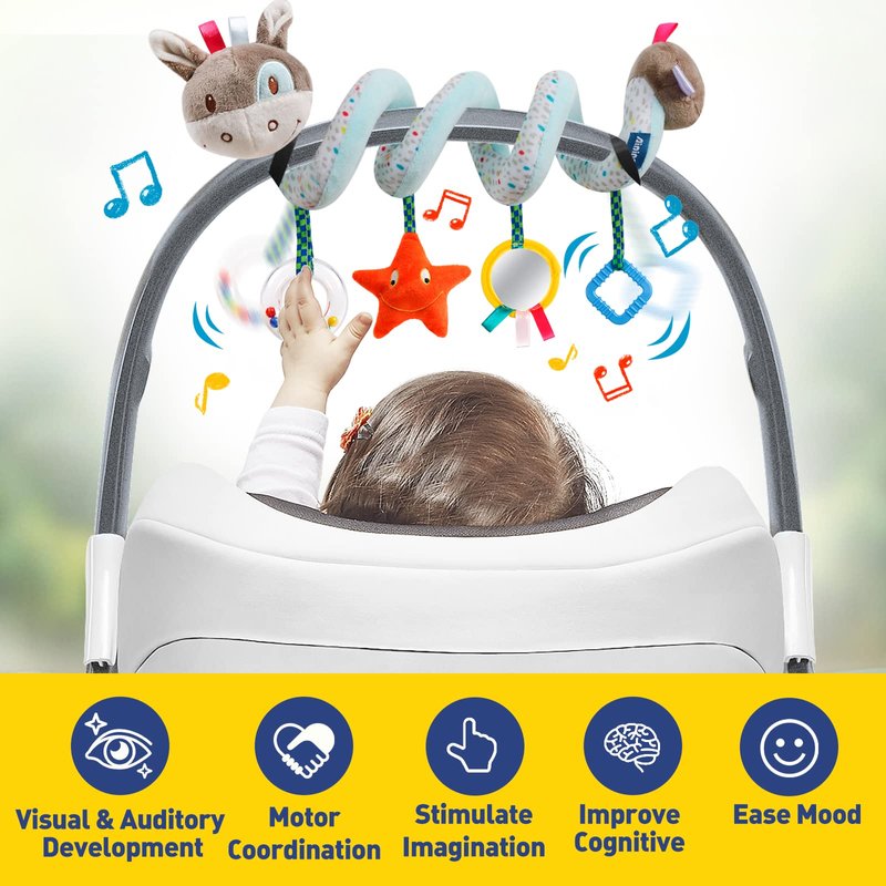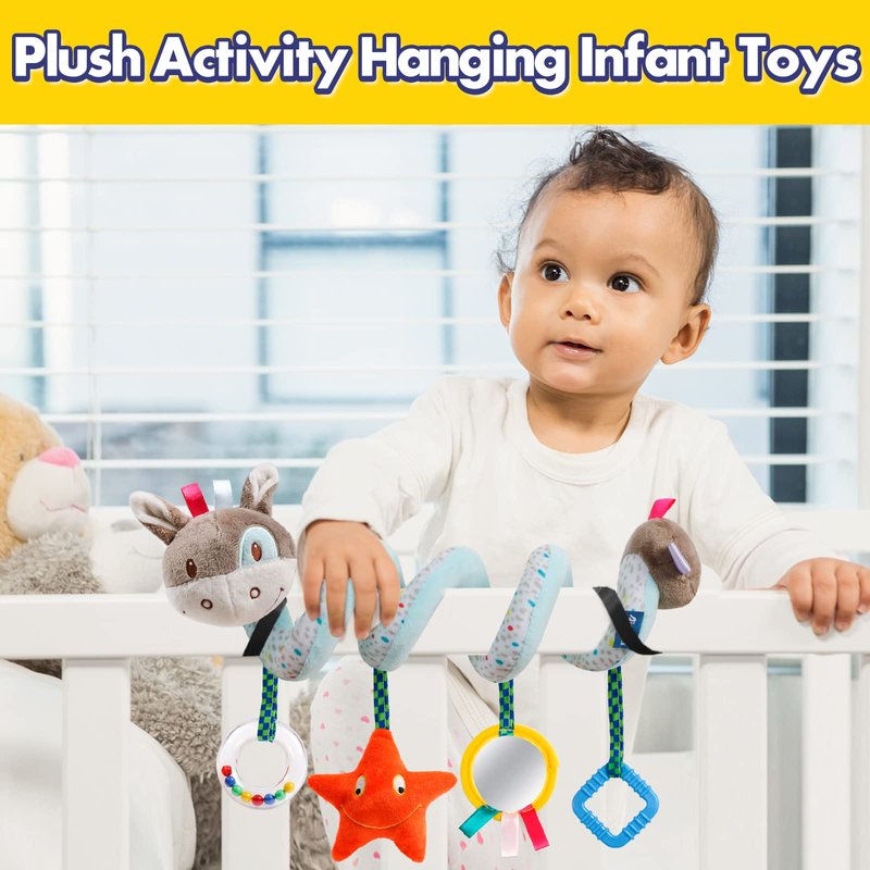 Baby Car Seat Toys Activity Stroller Toy for Boys Girls 0 3 6 9 10 12 Months, Spiral Hanging Plush Toys, Baby Shower Thank You New Year Gifts X-mas Stocking Stuffers