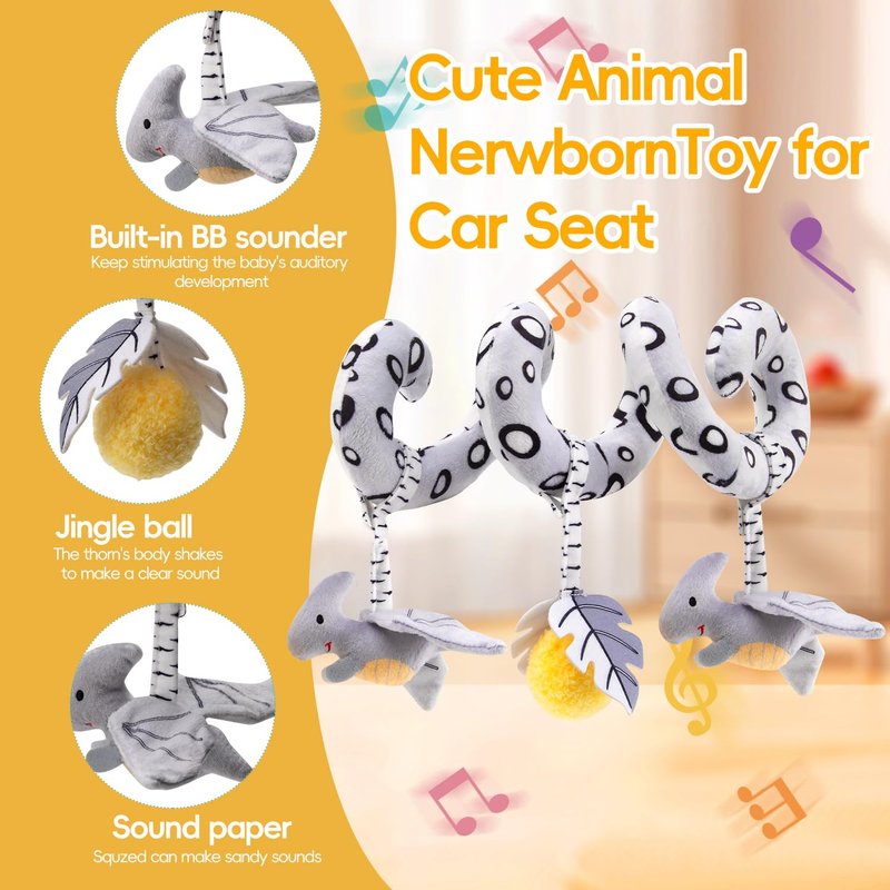 - Baby Sprial Mobile Toys: When our baby sleeps, you can put the stuffed infant toys beside your baby. The Activity Spiral Car Seat Toys can serve as your baby's sweetheart partner and accompany your baby to sleep all night. You can put baby crib toys in the Baby Gym, Play Mats, Strollers, Cribs, Baby Car Seats, Cot, etc. Any questions about baby car toys & stroller toys, please contact our customer service