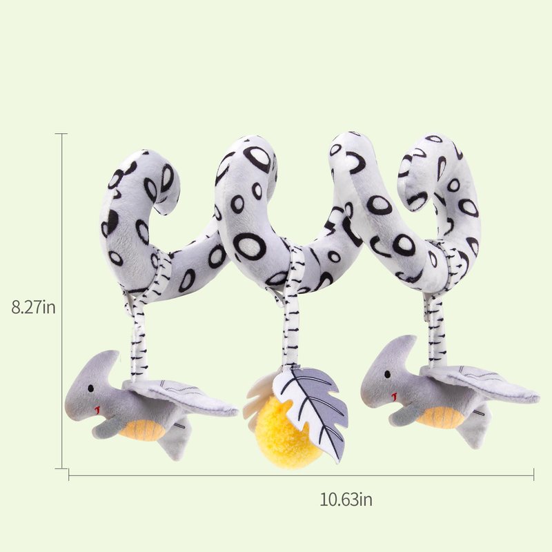 Baby Car Seat Toys, Car Seat Toys for Babies 0-6 Months, Black and White Spiral Activity Carseat Toys for Infant 0-3 Months, Stroller Toys for Babies 0 3 6 9 12 Months, High Contrast Baby Toys (Dino)