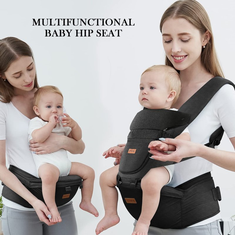 Baby Carrier with Hip Seat, Baby Carrier Newborn to Toddler, 6-in-1 Ways to Carry, All Seasons, Adjustable Baby Holder Carrier for Breastfeeding (Black)