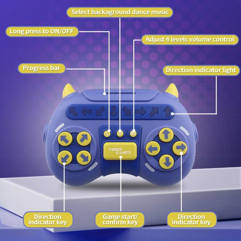Introducing the ultimate interactive toy for young minds - the Baby Game Remote Control! This vibrant and engaging device is designed to captivate and entertain little ones while fostering their cognitive development. With its eye-catching blue and yellow color scheme, complete with adorable cat-ear detailing, this remote control toy is sure to become an instant favorite. The large, easy-to-press buttons feature directional arrows and symbols, allowing children to explore cause and effect relationships while enhancing their hand-eye coordination. The built-in video game mode adds an extra layer of excitement, encouraging imaginative play and problem-solving skills. Compact and lightweight, this toy is perfect for on-the-go fun or playtime at home. Crafted with durable materials, it can withstand the wear and tear of energetic playtime. Unleash your child's creativity and spark their love for learning with this delightful Baby Game Remote Control toy.
