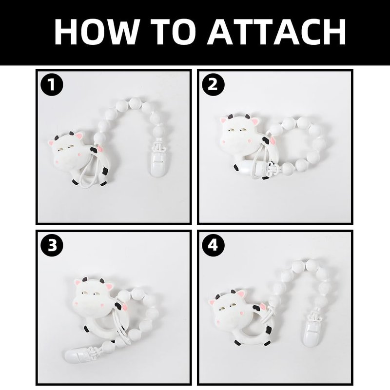 - Make Parents Easy: Our teethers are perfect size and easy-grasp design for baby to hold,Strong plastic clip can be clipped on baby clothes,blankets,toys,strollers,or car seats,the suitable length design prevents the baby's pacifier and teether toys from falling to the ground.