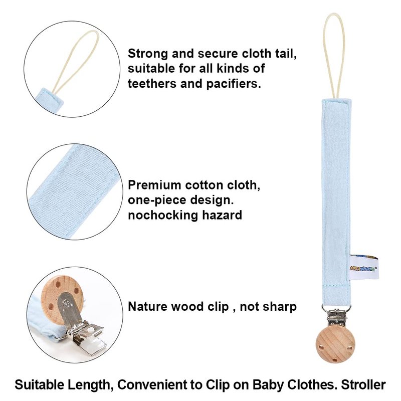 - 100% Safe:Teerher is made of BPA free food grade teething silicone,non-toxic.our clip is one-piece design,made of cotton and wood clip,not like beads pacifier clip, there is no need to worry about small beads coming off the string and posing a choking risk.Conform to satefy standards ASTM-F963 and CPSA