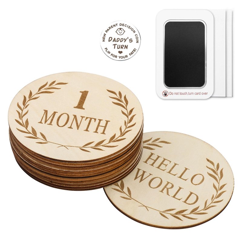 Baby Gifts Set,13Pcs Baby Monthly Milestone,with Ink Pad for Baby Hand and Footprints,New Parents Decision Coin,Record Newborn's Development, Fun Baby Gift for New Parents(Gift Sets)