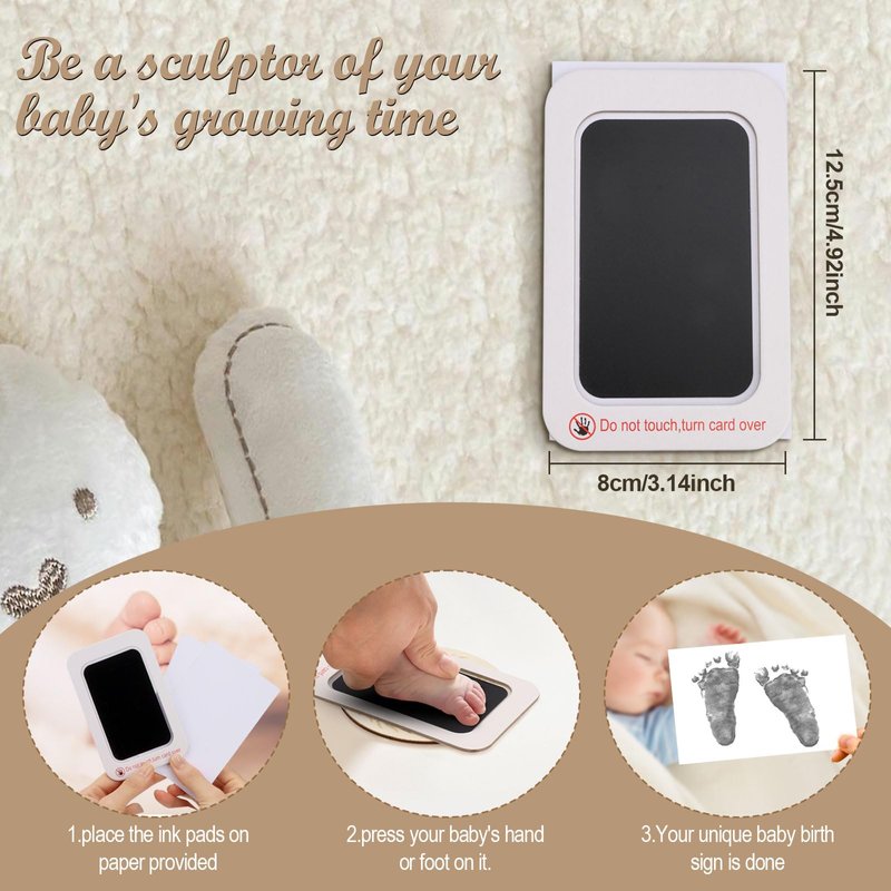 • PRODUCT CONTENT - You will receive a baby gift set that includes 13 sheets of baby monthly milestones, an imprinting station for baby's hand and foot prints, and newborn parental decision coins. These combinations will help you record every moment of your baby's life from birth to growth.