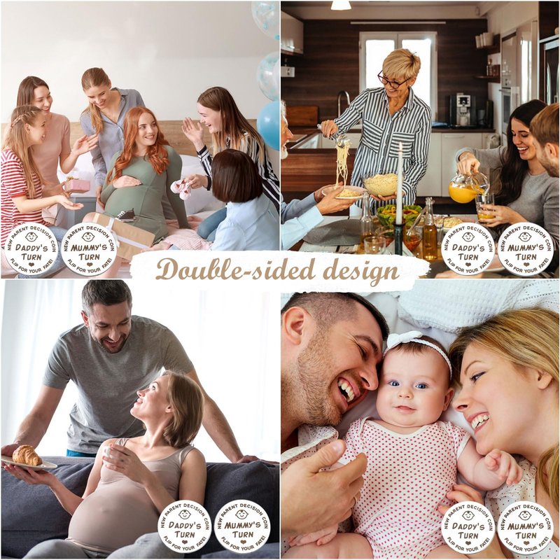 • DECISION COINS - Our double-sided decision coins are engraved with the words "Daddy's turn" on one side and "Mommy's turn" on the other. The perfect gift for new parents. Add some fun to new parents and bring many interesting things to life.