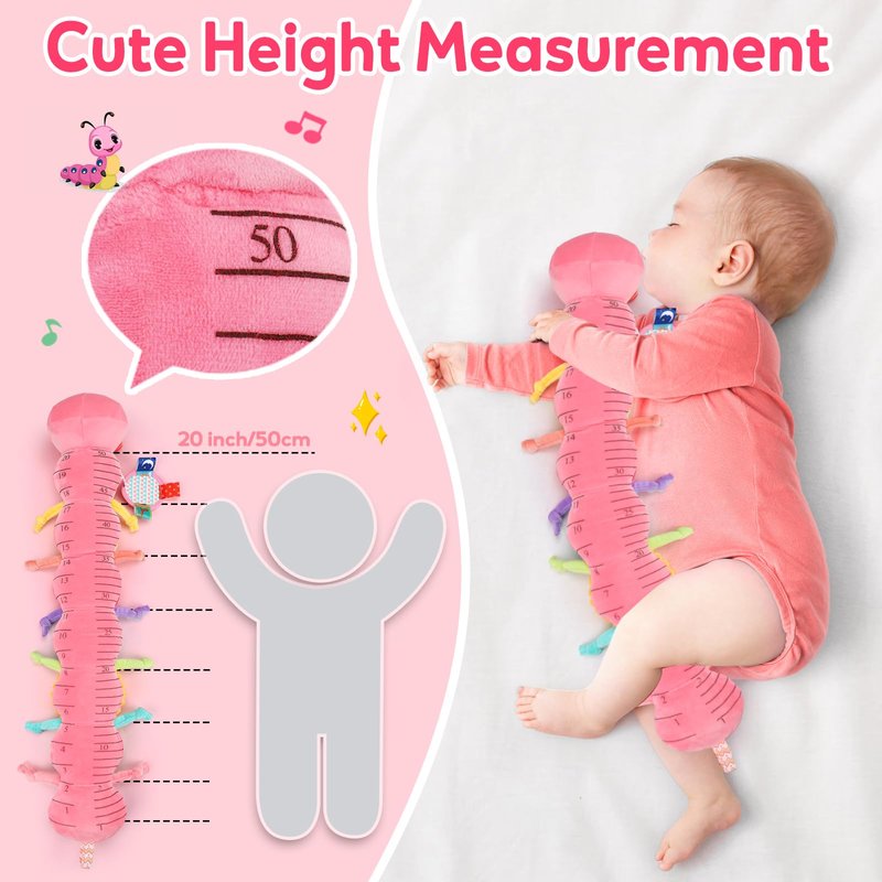 - 4 IN 1 Baby Toys: We combine the fun of rattle toys, music toys, crinkle toys and animal plush toys into this baby textured toys. Multiple ways to play help baby develop fine motor skills, and brain development. On the back is a measuring ruler that allows moms easily measure the baby's height during the baby tummy time. Wonderful infant toys accompany 3-6 months baby grow up. Best newborn baby first birthday gift, toys for 6 month old girls