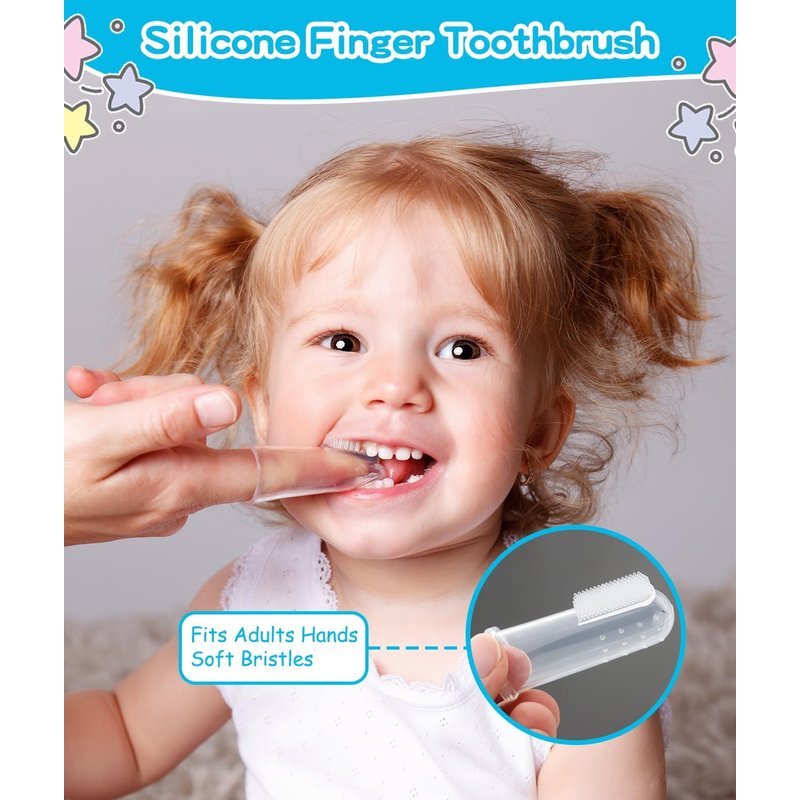 - SPECIALLY DESIGNED FOR BABY: 1. Grooming set: scissors with round blades, round teeth, gentle and non-irritating, suitable for baby's hair combing use; 2. Plastic tweezers, nasal aspirator and nail clippers with stopper to ensure baby's safety and comfort when using; 3. Dropper and measuring spoon with scale, convenient for you to accurately measure the amount, comfortable silicone finger toothbrushh and tongue cleaning stick, clean baby's teeth and tongue.
